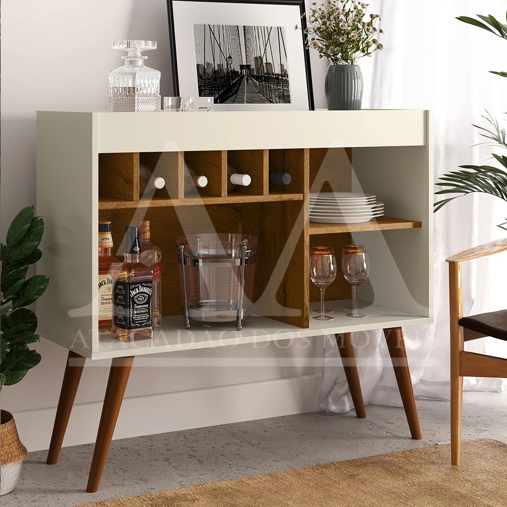 O aparador adega New Odin da EJ é um complemento de sala com design moderno. Material Principal: MDP Adega para 05 garrafas: sim Espaço para taças: sim Pés em madeira: 04 Pintura UV: sim Dimensões Altura: 84 cm Largura: 93 cm Profundidade: 35 cm Garantia: 03 meses