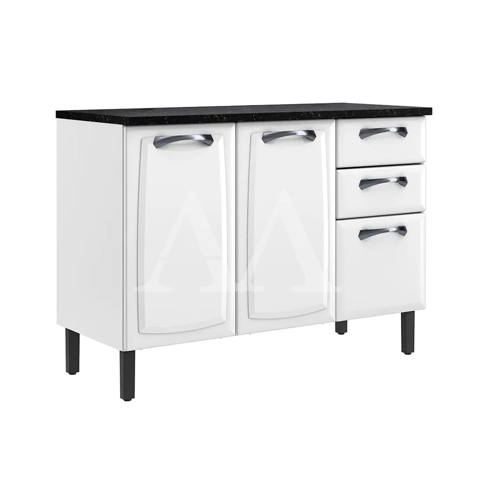 O Balcão New Premium é ideal para compor a sua cozinha.. Tampo com BP: sim Prateleiras bem distribuidas: sim Amplo espaço interno: sim Gavetas com corrediças telescópicas: sim Puxadores em ABS Dimensões Altura: 88 cm Largura: 120 cm Profundidade: 52 cm Garantia: 03 meses
