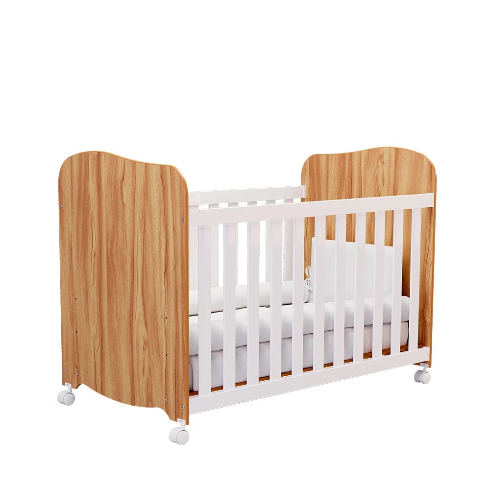 O berço Americano Duda da Peroba é uma excelente opção de mobiliário de quarto infantil. Este móvel comporta colchão de 12 cm de altura (máxima permitida); 70 cm de largura e 130 cm de comprimento. O colchão NÃO ACOMPANHA o berço. Material Principal: 100 % MDF Berço padrão americano: sim Bordas laqueadas: sim Base do colchão com 3 opções de altura: sim Varal para mosquiteiro incluso: sim Rodízios: 04 (sendo 02 com travas) Dimensões Altura: 98,6 cm Largura: 132,4 cm Profundidade: 76 cm Garantia: 03 meses