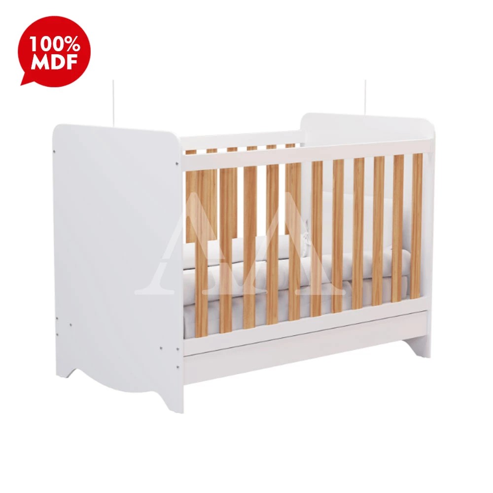 O berço Ben da Peroba é uma excelente opção de mobiliário de quarto infantil. Este berço possui certificado conforme Portaria do INMETRO nº 143/2021 (Registro nº 004867/2020). Este móvel comporta colchão de 12 cm de altura (máxima permitida); 70 cm de largura e 130 cm de comprimento. O colchão NÃO ACOMPANHA o berço. Material Principal: 100 % MDF Suporte cortinado incluso: sim Bordas laqueadas: sim Pintura atóxica: sim Dimensões Altura: 120 cm Largura: 70 cm Profundidade: 130 cm Garantia: 03 meses