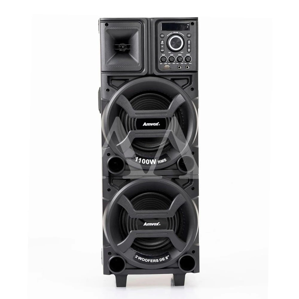 A caixa de som ACA1101 duplo 8 black da Amvox é um eletrodoméstico que vai surpreender você. Bivolt Manual: sim 2 Woofers de 10” : sim 1 Tweeter de 6” + 1 Tweeter de 3″: sim Potência 1100W Rms Bluetooth: sim Equalizador: sim Show de LED: sim Amplificador Digital: sim Tecnologia Double Coil: sim Entradas Aux, USB e Cartão SD: sim Power X – Conecte 2 Caixas de Som: sim 2 Entradas para Microfone e Instrumentos: sim Função prioridade microfone: sim Voltagem: 110/220 V Dimensões Altura: 78,8 cm Largura: 31,5 cm Profundidade : 29,5 cm GARANTIA: 03 MESES DIRETO NA ASSISTÊNCIA TÉCNICA AUTORIZADA DA FÁBRICA.