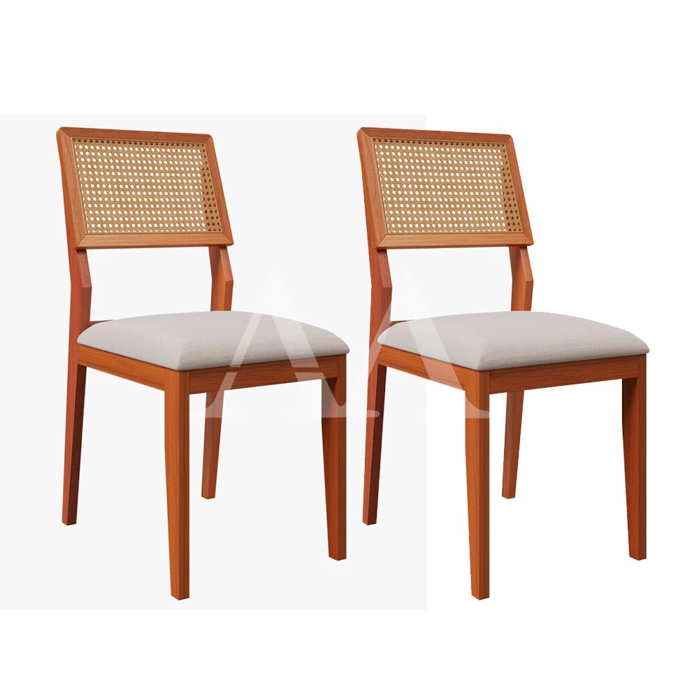 ATENÇÃO: EMBALAGEM CONTÉM 2 CADEIRAS. A Cadeira Larissa da Agn dará muito charme e elegância a sua sala. Estrutura de madeira maciça: sim Encosto arredondado: sim Tela Rattan: sim Tecido super resistente: sim D40 Assento Dimensões da Cadeira Altura: 93 cm Largura: 46 cm Profundidade: 50 cm Garantia: 03 meses.
