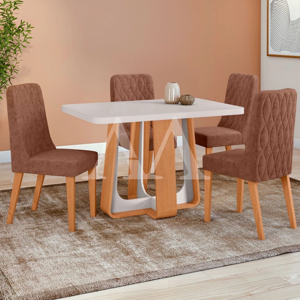 O conjunto de mesa Sintonia com 4 cadeiras Luar da Lopas possui design moderno e arrojado e vai deixar sua sala mais bonita e elegante. Diferenciais da mesa Material do tampo: MDF e vidro Material da base: MDP Dimensões da mesa Altura: 78 cm Largura: 120 cm Profundidade: 80 cm Dimensões da cadeira Altura: 97 cm Largura: 43 cm Profundidade: 57 cm Garantia: 03 meses