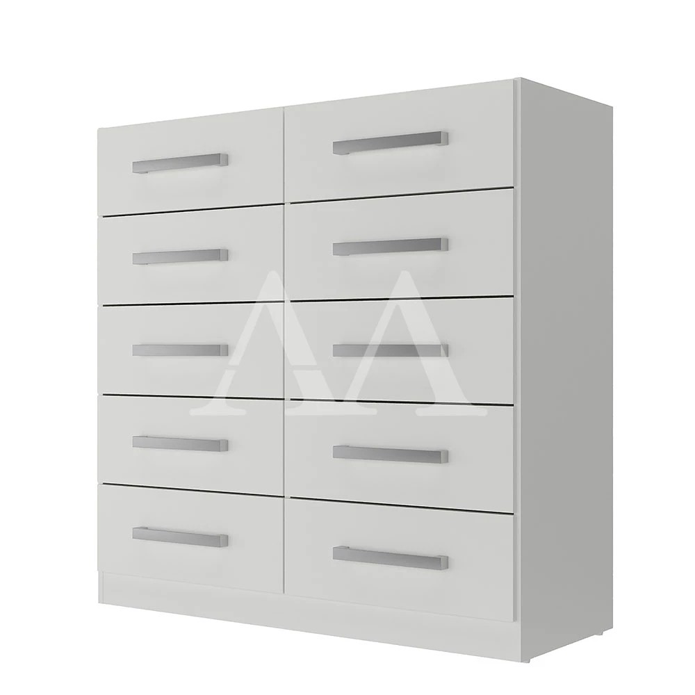 Obs: A parte interna deste móvel é branco gelo. A Cômoda Torres da Rodial é uma excelente opção para seu quarto porque permitirá que você organize uma grande quantidade de roupas. Material Principal: MDP de 12mm Puxador em ABS: 10 Gaveta externa com corrediças plásticas: 10 Dimensões Altura:  91 cm Largura: 90,6 cm Profundidade: 38,5 cm Garantia: 03 meses