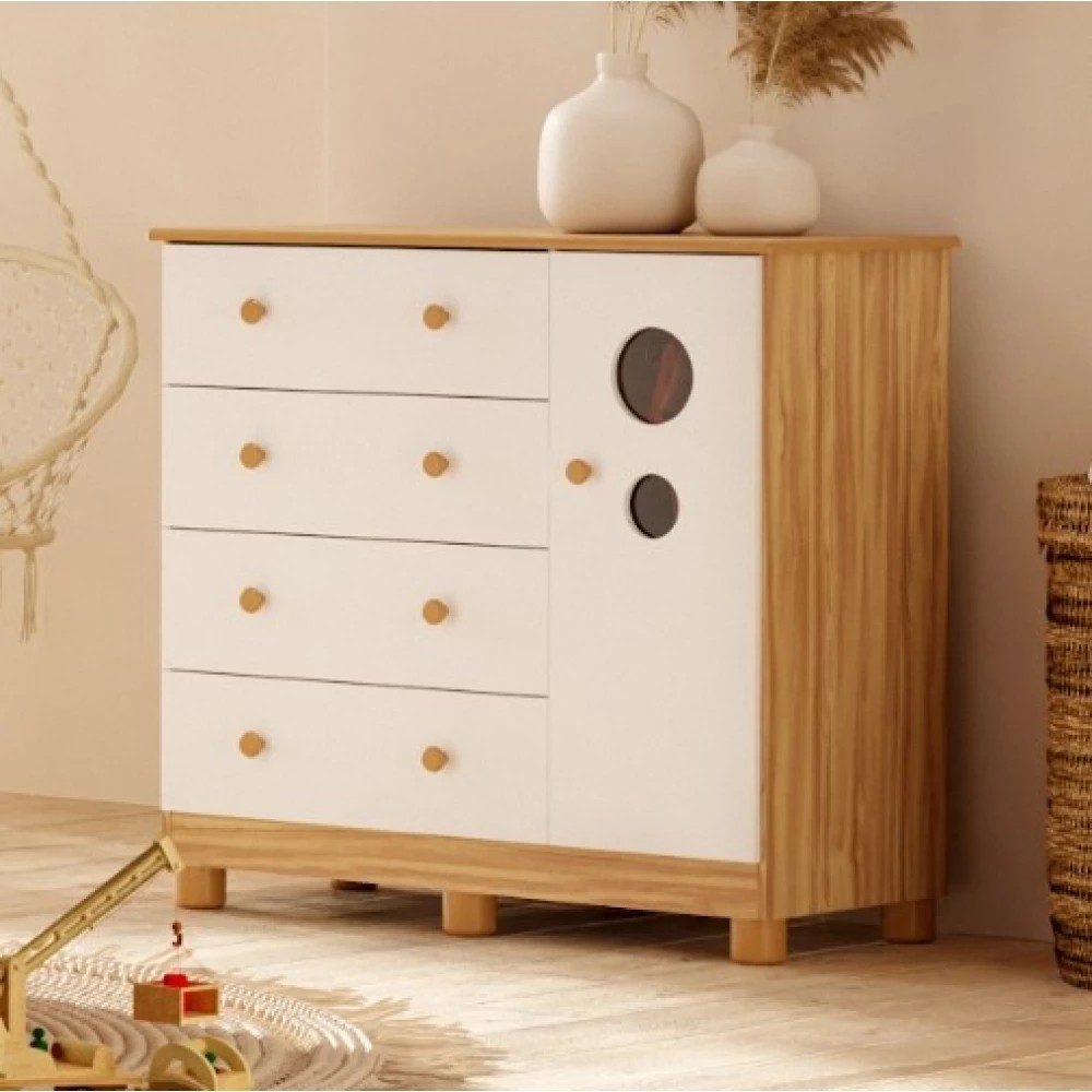 Mais organização e praticidade para o seu quarto com a Cômoda Duda Plus da Peroba. Com design moderno e funcional, ela oferece ótimo espaço interno para guardar roupas e acessórios, além de um acabamento elegante que valoriza o ambiente. Modelo: Duda Plus Marca: Peroba Quantidade de gavetas: 4 Quantidade de portas: 1 (abrir) Material Principal: MDF Corrediças: Metálicas Puxadores: Sim Acabamento: Amêndoa / Branco Brilho Dimensões aproximadas: Altura: 92 cm Largura: 89 cm Profundidade: 45 cm Garantia: 03 meses
