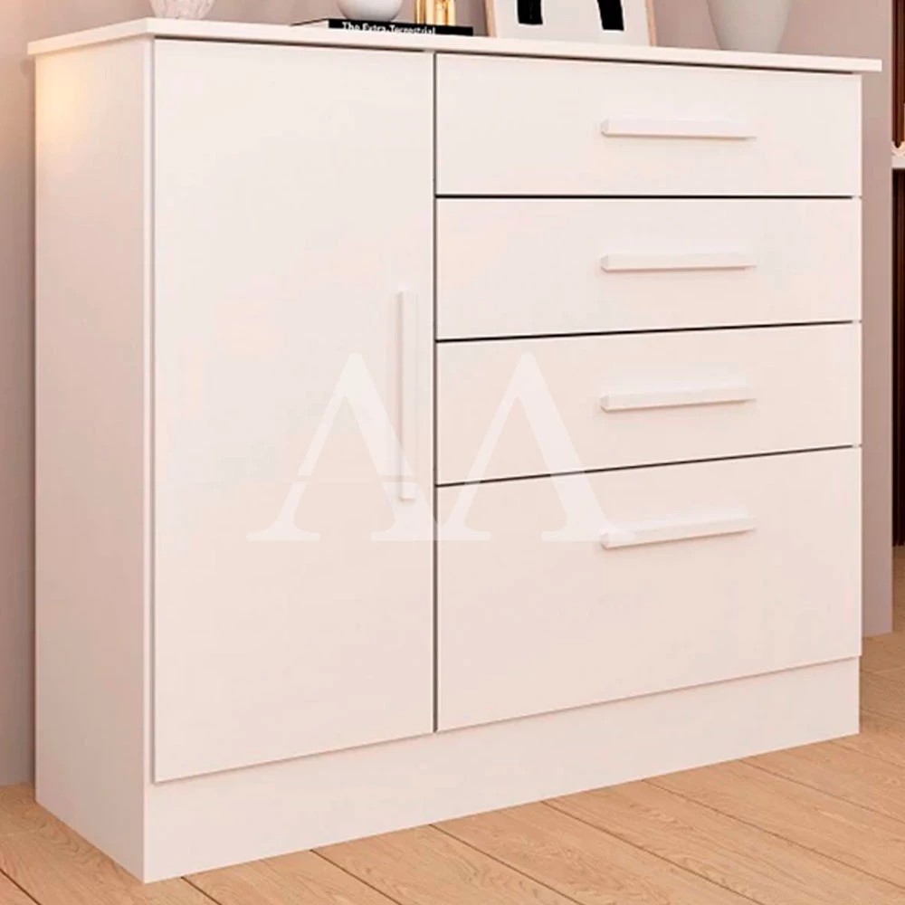 Adicione charme no seu quarto com a cômoda chicago Corrediças telescópicas: sim Material: MDP Porta 15mm: sim Dimensões: Altura: 91,5 cm Largura: 104,4 cm Profundidade: 44,8 cm Garantia: 03 meses