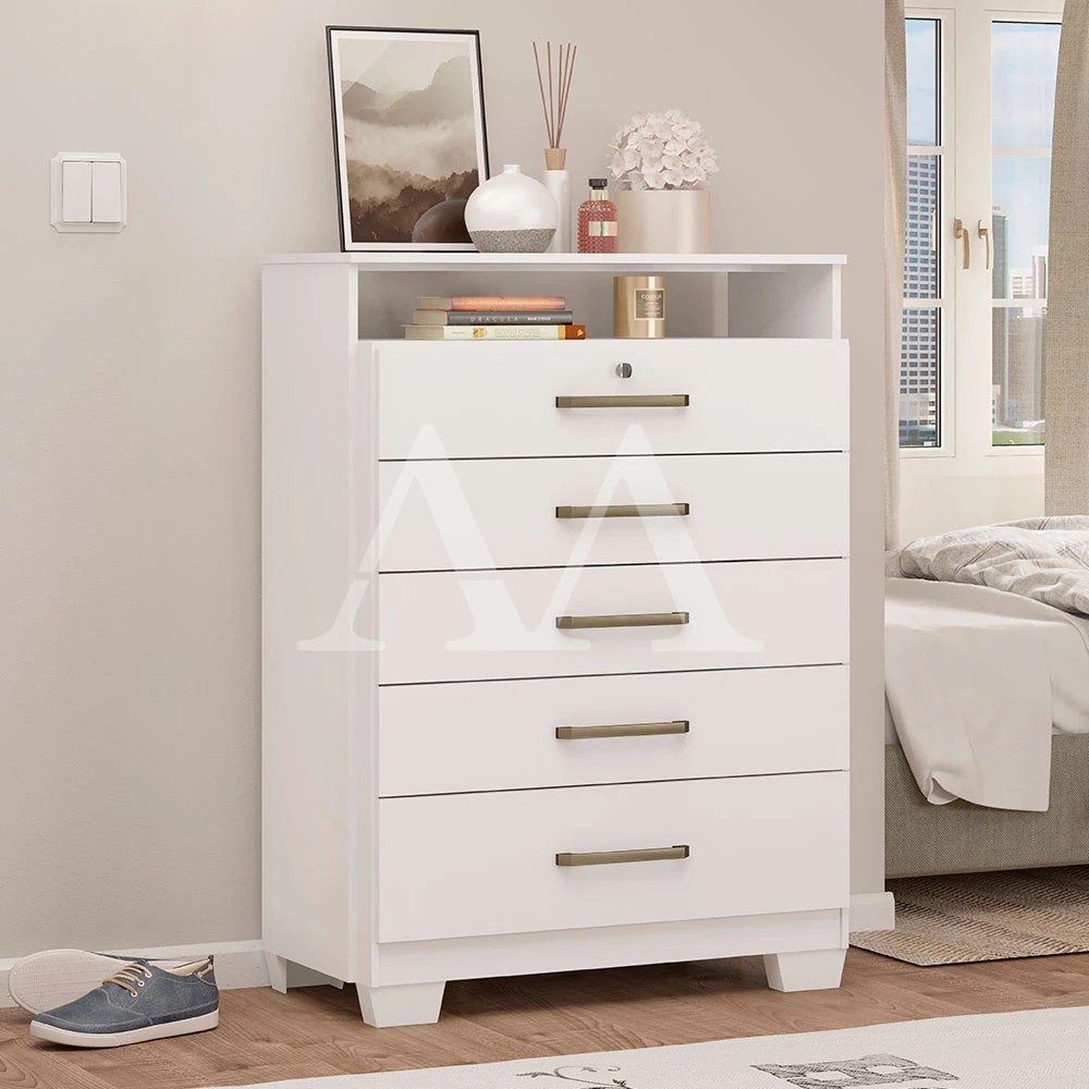 A Cômoda Triunfo Demobile é perfeita para você que procura praticidade e organização para o seu quarto. Material Principal: MDP Pintura UV: sim Corrediças metálicas: sim Puxadores em ABS: sim Gaveta com chave Dimensões Altura: 110 cm Largura: 86 cm Profundidade: 42 cm Garantia: 03 meses