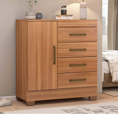 A cômoda Montevideu da Demobile é um móvel funcional e elegante, ideal para quem busca organização e praticidade no quarto. Com quatro gavetas espaçosas e uma porta com prateleira interna, ela oferece um excelente espaço para armazenar roupas e acessórios. Produzida em MDP e com corrediças metálicas, garante durabilidade e suavidade ao abrir e fechar as gavetas. Seu design moderno se adapta bem a diferentes estilos de decoração, tornando o ambiente mais sofisticado e organizado