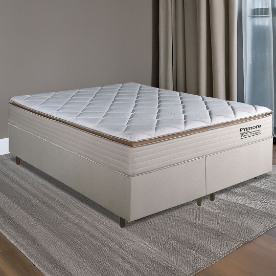 O conjunto box Primore D45 Queen Size 158 cm oferece um design cuidadosamente elaborado para proporcionar conforto e suporte excepcionais. Seu tampo é revestido por uma malha especial, conferindo uma sensação suave ao toque. Com uma camada de conforto feita de espuma selada D45, oferece um suporte firme e confortável para uma ótima noite de sono.