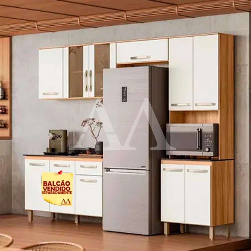 A cozinha Fit da Nicioli é muito bonita e elegante. Material Principal: MDP Portas de abrir: 07 (02 de vidro reflecta) Porta basculante com pistão: 01 Prateleira: 03 Puxadores: 08 Pés: 04 Dimensões Altura: 206 cm Largura: 251,2 cm Profundidade: 43 cm Garantia: 03 meses