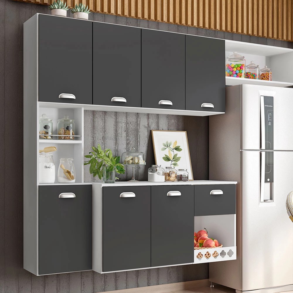 A cozinha suspensa Mila da Poliman é muito bonita e pratica. Material Principal: MDP Portas de abrir: 07 Prateleira: sim Corrediças telescópicas: sim Dimensões da cozinha Altura: 136 cm Largura: 180 cm Profundidade: 38 cm Dimensões do balcão Altura: 48 cm Largura: 90 cm Profundidade: 38 cm Garantia: 03 meses
