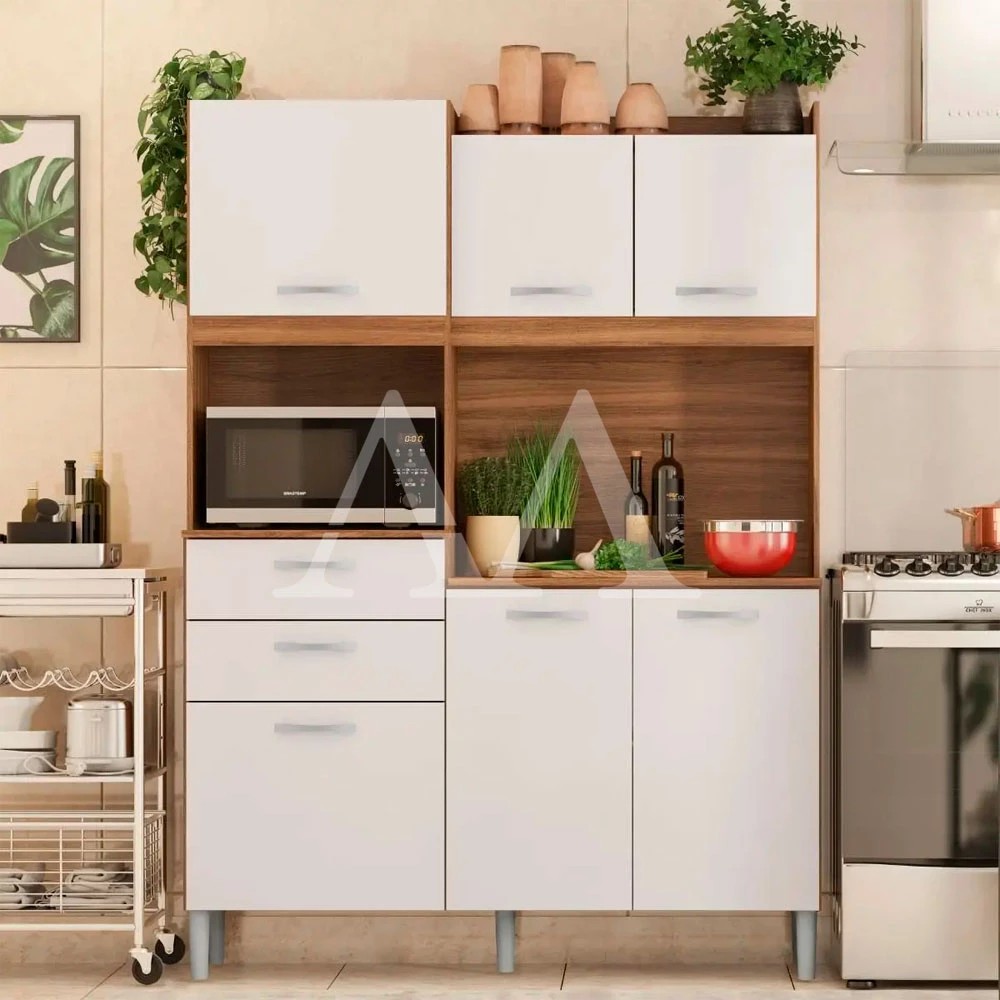 O Kit Harmonia da Demobile vai deixar sua cozinha super charmosa. Material Principal: MDP Possui prateleira: sim Corrediça na gaveta: sim Sapatas niveladoras: não Material do pés: PVC Dimensões Altura: 183 cm Largura: 132 cm Profundidade: 38 cm Garantia: 03 meses