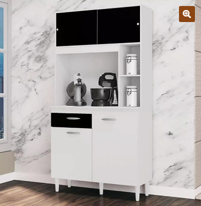 Armário para Cozinha Duda 90 cm Branco Preto – Poquema