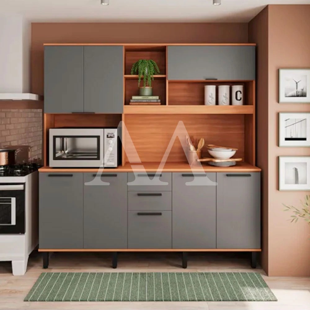 Adicione charme na sua cozinha com o Kit da TelaSul Castanha Dobradiças Slow motion: sim Gavetas com corrediças telescópicas: sim Pistão a gás: sim Torre quente para forno e microondas: sim Dimensões: Altura: 197 cm Largura: 190 cm Profundidade: 45 cm Garantia: 03 meses