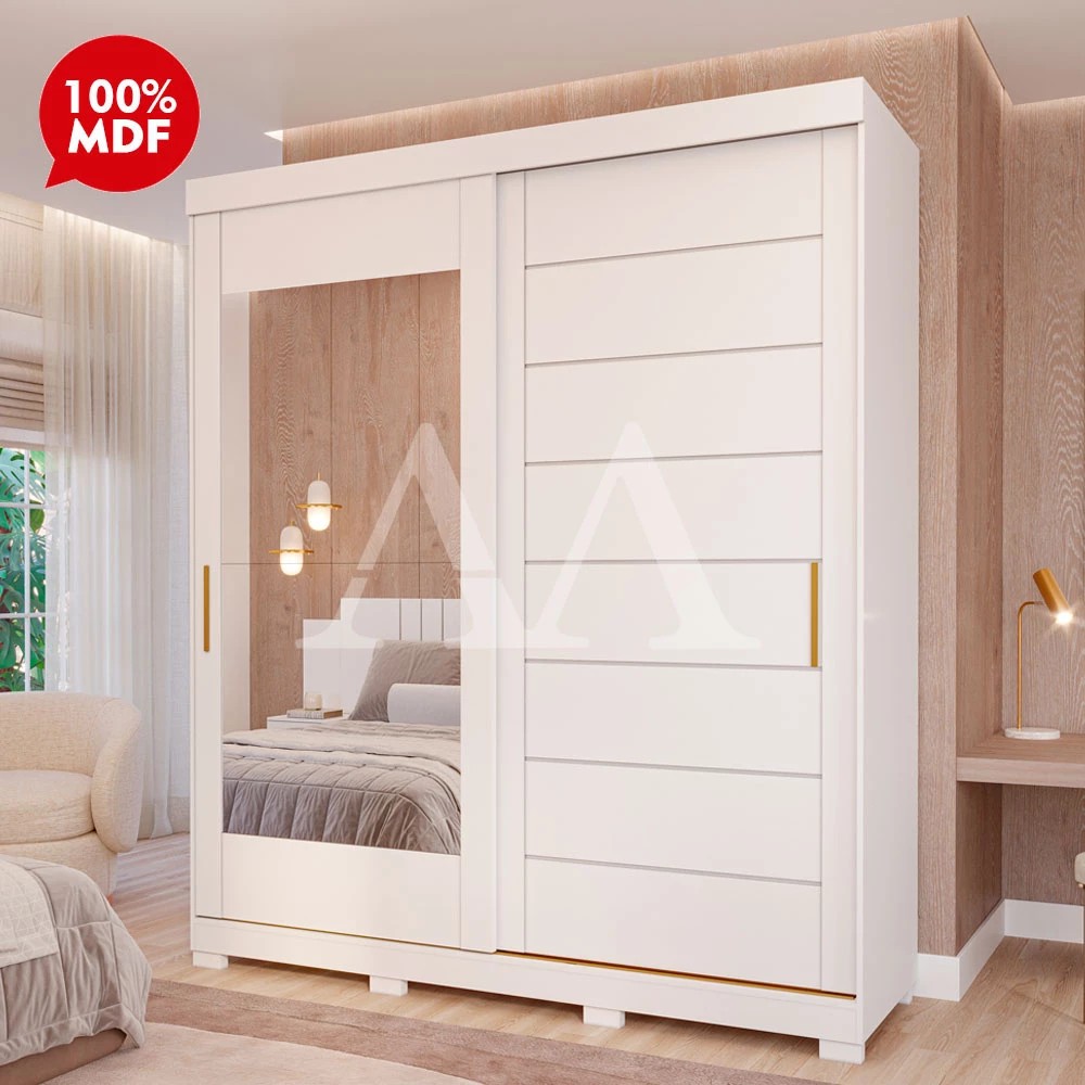Adicione charme no seu quarto com o Roupeiro Flora da Panan Material Principal: 100 % MDF Puxadores em alumínio:sim Trilho em alumínio: sim Pés em ABS:sim Corrediças Telescópicas:sim Dimensões: Altura: 235 cm Largura: 202,2 cm Profundidade: 55,4 cm Garantia: 03 meses