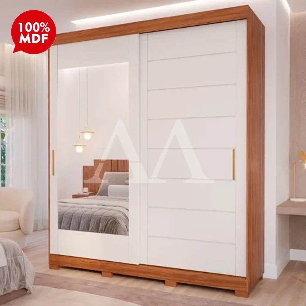 Adicione charme no seu quarto com o Roupeiro Flora da Panan Material Principal: 100 % MDF Puxadores em alumínio:sim Trilho em alumínio: sim Pés em ABS:sim Corrediças Telescópicas:sim Dimensões: Altura: 235 cm Largura: 202,2 cm Profundidade: 55,4 cm Garantia: 03 meses