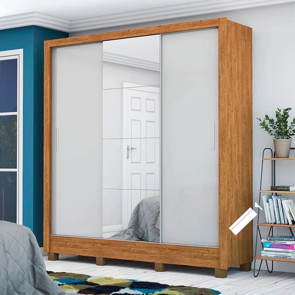 Adicione charme no seu quarto com o Roupeiro Santiago Plus da Carioca. Quantidade de portas: 3 Portas de correr: sim Material: MDP Dimensões: Altura: 207 cm Largura: 179 cm Profundidade: 47 cm Garantia: 03 meses