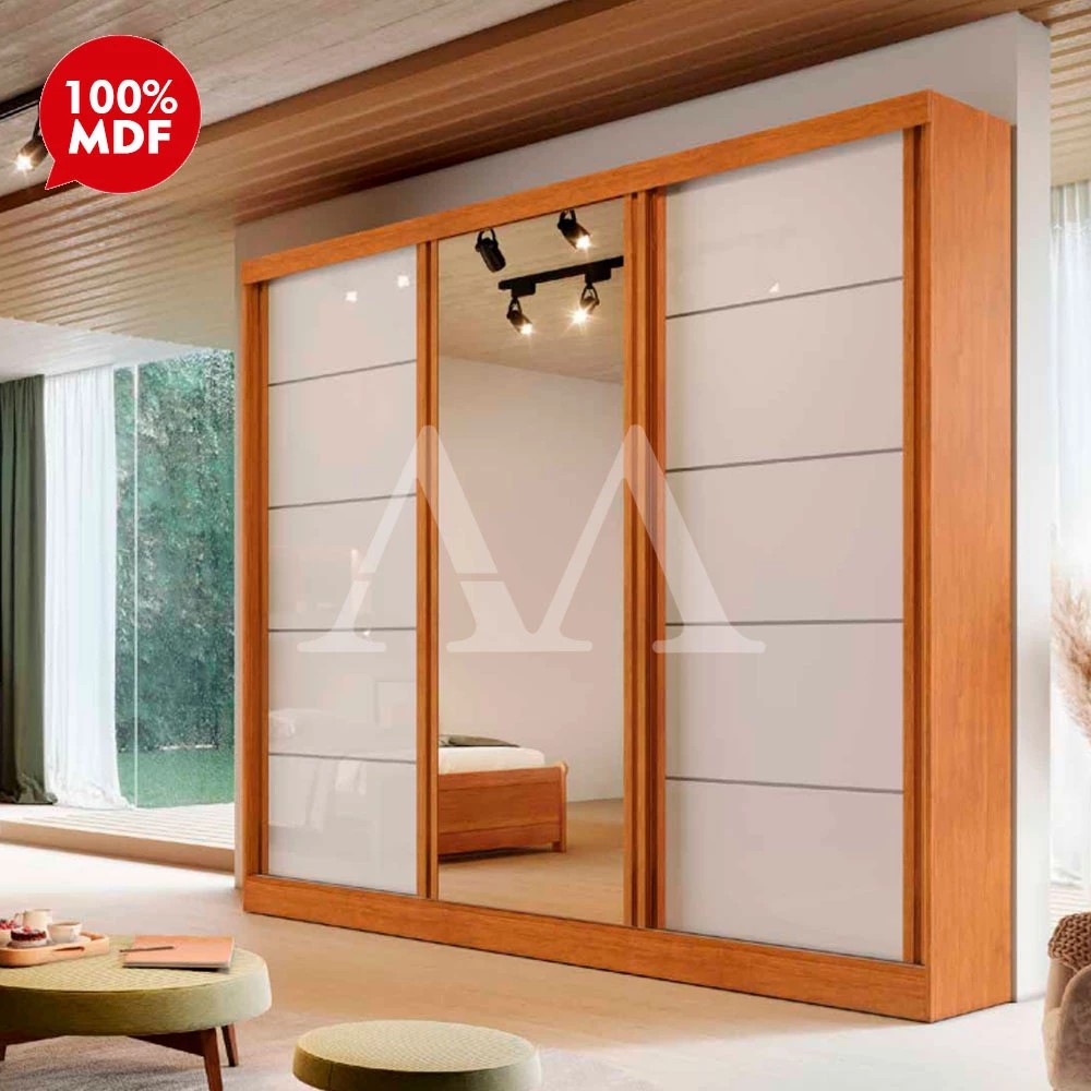 O Roupeiro Capri da Bianchi é perfeito para compor seu quarto combinando beleza e resistência. Material Principal: 100% MDF Pintura Uv: sim Puxador Metálico: sim Corrediças Telescópicas: sim Cabideiros em alumínio: sim Nichos: sim Dimensões Altura: 230 cm Largura: 221 cm Profundidade: 56 cm Garantia: 03 meses